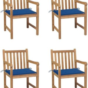 Emaga Vidaxl Krzesła Ogrodowe 4szt. Kobaltowe Poduszki Drewno Tekowe