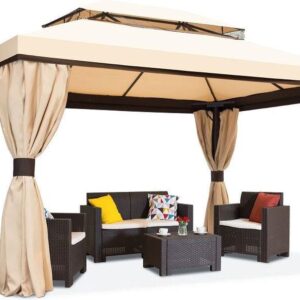 Kremowy Pawilon Ogrodowy Z Zasłonami Walencja 3X4M Garden Point