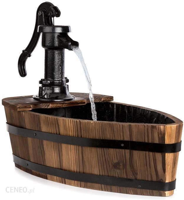Łagodnie szemrząca woda w połączeniu z uroczym wyglądem, to właśnie fontanna ogrodowa Blumfeldt. Za sprawą drewnianego zbiornika, z którego w stałym cyklu wypływa strumień wody, ozdobna studnia tworzy rustykalny nastrój w każdym ogrodzie i tarasie.Stabilna drewniana misa w kształcie łodzi zwieńczona jest dekoracyjną pompą abisynką z czarnego żeliwa. Misę fontanny ogrodowej wykonano z drewna jodłowego o pięknym rysunku słoi i wizualnie postarzono poprzez przypalanie. Aby woda pozostała bezpiecznie w zbiorniku, a także w celu ochrony drewna przed gniciem, kadź wyłożono od wewnątrz folią do oczek wodnych.Oczywiście, nikt nie musi ręcznie obsługiwać pompy, aby aktywować przepływ wody. Jest to zadanie zintegrowanej pompy elektrycznej działającej w myśl koncepcji Loopflow Concept i umieszczonej w kadzi, która tłoczy wodę poprzez system węży aż do wylotu. Potężne 12 watów zapewnia, że woda w ozdobnej fontanny płynie wartkim strumieniem.Urokliwy akcent dekoracyjny w każdym ogrodzie: Fontanna ogrodowa Starnberg od Blumfeldt.