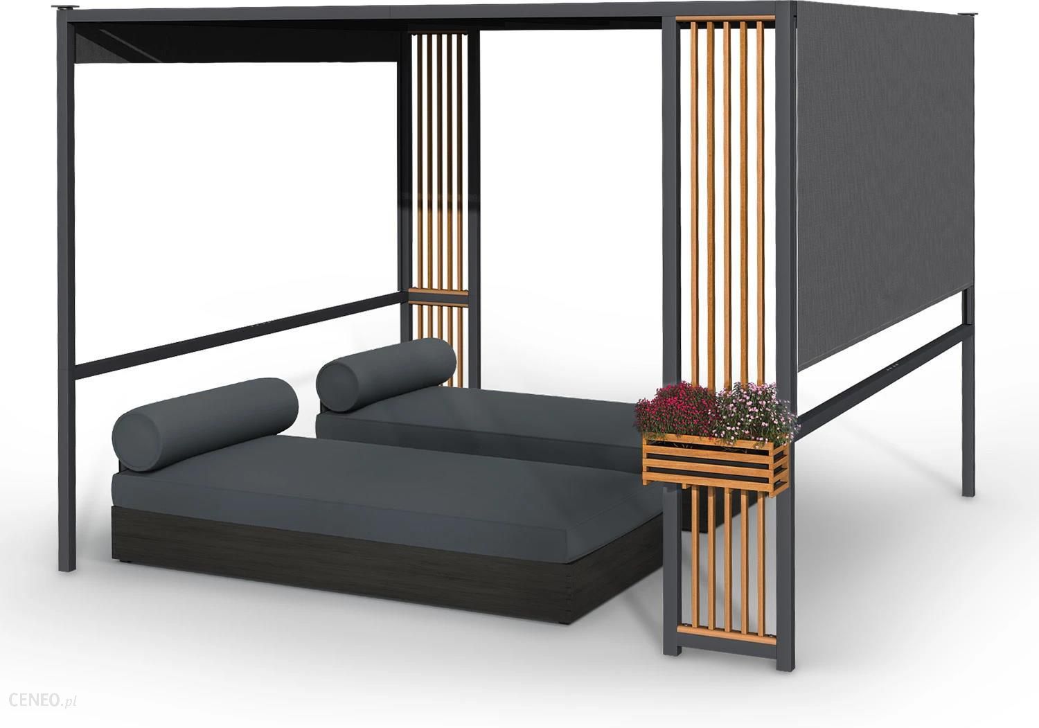 Idylliczne, osłonięte miejsce nawet w rześkie letnie wieczory: altana Valence marki blumfeldt zaprasza w każdej chwili do wypoczynku na świeżym powietrzu, a oświetlenie solarne LED zapewnia przytulną atmosferę.blumfeldtPod dachem eleganckiej altany Valence marki blumfeldt możesz cieszyć się każdą pogodą z rodziną lub przyjaciółmi – wysokiej jakości powlekany materiał zapewnia ochronę przed promieniami UV i deszczem. Czy to na tarasie, czy w ogrodzie – doświadcz komfortowe zacienionego miejsca, które jednocześnie jest cudownym dekoracyjnym elementem przyciągającym wzrok. Piękne rozpórki z drewna tworzą ściany boczne i są idealne do mocowania doniczek z okazałymi nasadzeniami. W ten sposób ekskluzywny pawilon ogrodowy Valence marki blumfeldt staje się letnią oazą, którą wieczorem dobrze oświetla nastrojowe światło LED. Oświetlenie zasilane jest wyłącznie światłem słonecznym o mocy 5 W poprzez zewnętrzny panel słoneczny z akumulatorem. Odporna na warunki atmosferyczne rama daje możliwość długotrwałego korzystania z oazy ogrodowej, a także zapewnia stabilność. Idylliczna oaza ogrodowa na słoneczne godziny i przytulne wieczory: dzięki oświetlonej altanie Valence marki blumfeldt możesz cieszyć się świeżym powietrzem na powierzchni 9 m²!