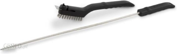 Narzędzia do konserwacji palników Dwa narzędzia służące do konserwacji i czyszczenia palników w grillach Broil King. Szczotka ze stalowym skrobakiem i szpikulcem do otworów służy do czyszczenia zewnętrznych części palników grilli i otworów którymi wydobywa się gaz. Druga szczotka na długiej elastycznej sprężynie czyści wewnętrzne tuby palników by utrzymywać te najważniejsze elementy grilla w idealnej czystości.