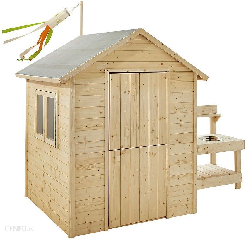 Domek dla dzieci z kuchnią to świetne miejsce do zabawy. Domek został wykonany z drewna sosnowego. Przeznaczony dla 3 dzieci w wieku 3-12 lat. Posiada otwierane okno oraz drzwi. Wymiary kuchni błotnej 91×48 H 85cm. Wstępnie zmontowane ściany ułatwiają montaż. Do zestawu dołączona jest papa i podłoga. – drzwi: 56×126 cm- okno: 57×45 cm plexi