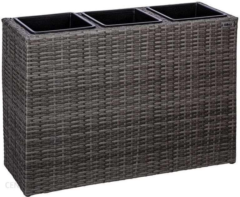 Piękny stojak na trzy doniczki to prawdziwa atrakcja dla Twojego domu. Stojak z donicami wewnętrznymi idealnie nadaje się do sadzenia w ogrodzie, na balkonie lub tarasie, może służyć również jako ścianka działowa. Materiał przekona Cię swoimi doskonałymi właściwościami: jest odporny na warunki atmosferyczne, promieniowanie UV, odpycha brud i jest łatwy w utrzymaniu czystości. Zdejmowane donice wewnętrzne wyposażone są w zamykany odpływ wody, co zapobiega przemoczeniu.Dane techniczne:wymiary całkowite: 83 x 30,5 x 60 cmwymiary pojemnika wewnętrznego: 25 x 25 x 20 cmszary kolormateriał: polirattanzastosowanie wewnątrz i na zewnątrzZawartość opakowania:1 x stojak na doniczki;3 x pojemnik wewnętrzny
