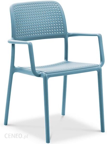 Opis:Włoskie krzesło ogrodowe do uniwersalnego użytku. BORA Celeste marki Nardi nad wyraz udanie zespala w sobie unikatowy design, ażurowe wzornictwo i atrakcyjny wizualnie jasnoniebieski kolor z ogromną trwałością oraz funkcjonalnością, tak charakterystyczną dla mebli z sektora HoReCa. Z krzesłem do restauracji użytkowanym w warunkach domowych, jak choćby przy basenie czy na przyjęciach w ogrodzie, można być w pełni spokojnym o miły relaks w towarzyskiej atmosferze. Krzesła Nardi BORA Celeste są wyjątkowo wytrzymałe: tak na działania mechaniczne (otarcia, zadrapania etc.) jak też blaknięcie błękitnej barwy w wyniku promieniowania słonecznego czy innych czynników pogodowych. To wszystko dzięki specjalnej mieszance materiałów – syntetycznej żywicy i włókien szklanych. Taki polipropylen w krześle ogrodowym przyczynia się do tego, że włoskie meble zachowują swoje atuty kilka razy dłużej niż tańsze na pozór produkty. Być może krzesło ogrodowe Nardi BORA stanowi większy pojedynczy wydatek, ale jest w stanie dobrze służyć nawet i kilkanaście lat. Czego nie da się powiedzieć o tanich krzesłach z pośledniego plastiku, które po jednym sezonie najczęściej nadają się jedynie do wymiany na nowe. Przyznany przez Włoski Instytut Badawczy certyfikat CATAS świadczy o najwyższej jakości i dopuszczeniu krzesła Nardi BORA do restauracji, kawiarni hoteli oraz innego typu obiektów publicznych. A takie praktyczne rozwiązania jak dobrze wyprofilowane podłokietniki czy antypoślizgowe, stabilne na właściwie każdej powierzchni nogi jeszcze bardziej zwiększają komfort relaksu na krzesłach ogrodowych.Cechy: całość wykonano z najwyższej jakości tworzywa jakim jest 100% polipropylen, którego strukturę wzmocniono dodatkowo włóknem szklanym dla uzyskania maksymalnej trwałościzastosowane tworzywo ma na całym swoim przekroju jednolitą strukturę i kolor, nie traci więc barwy pomimo intensywnego użytkowanianogi mają antypoślizgowe zakończenia i nie ślizgają się na mokrych powierzchniachkrzesła można sztaplować (wkładać jedno w drugie), w ten sposób nie zajmują dużo miejsca, kiedy nie są używanekrzesło ogrodowe Bora jest maksymalnie odporne na zmienne warunki pogodowe i wyjątkowo wytrzymałe potwierdzeniem najwyższej jakości produktu jest uzyskanie specjalnego certyfikatu instytutu badawczego CATASkrzesła są bardzo łatwe do utrzymania w czystości, wystarczy zmyć je wodą z węża ogrodowego lub użyć wilgotnej ściereczkiprodukt renomowanego producenta mebli do ogrodu i kanału HoReCa – marki NardiWymiary:Szerokość – 58,5 cmWysokość – 86 cmGłębokość – 59 cmWaga – 4,4 kg