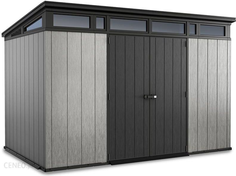 W każdym ogrodzie czy przy domu przyda się miejsce, gdzie można schować narzędzia lub meble ogrodowe. Znakomicie nada się do tego celu domek ogrodowy ARTISAN 11×7 firmy Keter. Jest to duży, prostokątny domek z jednospadowym dachem i świetlikami doświetlającymi wnętrze domku. Domek jest wykonany z tworzywa odpornego na warunki zewnętrzne, dzięki czemu jest niezwykle trwały i długowieczny. Nie wymaga również specjalnej konserwacji. Poszczególne części domku są w kolorach szarym i antracytowym, co pozwala na jego doskonałe połączenie z naturalnymi barwami ogrodu. Jeżeli użytkownik będzie chciał zmienić kolor domku, bez problemu można go przemalować. Ściany domku ARTISAN zostały wykonane z zastosowaniem technologii Keter Duotech. Podwójne, wzmocnione ściany są dodatkowo wsparte na konstrukcji stalowej znajdującej się wewnątrz domku. Ten typ konstrukcji zapewnia doskonałą stabilność i wytrzymałość na wszelkie wpływy zewnętrzne.