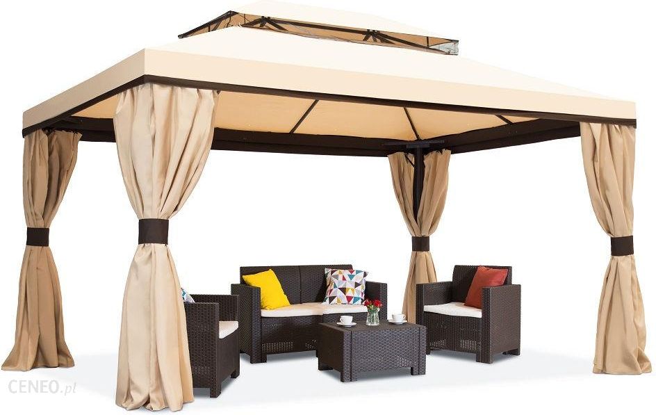 Kremowy Pawilon Ogrodowy Z Zasłonami Walencja 3X4M Garden Point