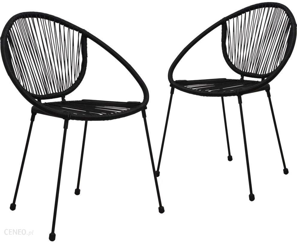 Ten zestaw krzeseł ogrodowych, łączący styl i komfort, wniesie odrobinę niczym nieograniczonej elegancji do Twojej przestrzeni na świeżym powietrzu.Wykonany z czarnego rattanu PVC i czarnej, malowanej proszkowo, stalowej ramy zestaw krzeseł ogrodowych służy do tego, by przyciągać wzrok w Twoim ogrodzie, na balkonie, tarasie itp. Charakteryzuje się on ergonomiczną formą, aby zapewnić optymalny komfort siedzenia. Krzesła są sztaplowane, aby zaoszczędzić miejsce, gdy nie są w użyciu. Oferują idealne miejsce, by poczytać książkę, wypić kawę, porozmawiać z innymi lub po prostu się zrelaksować. Komplet jest łatwy w czyszczeniu i utrzymaniu.Montaż tych krzeseł ogrodowych jest prosty.Kolor: czarnyMateriał: rattan PVC, stalWymiary: 57 x 57,5 x 82 cm (szer. x gł. x wys.)Wysokość siedziska nad ziemią: 44 cmMożliwość składania w stosProdukt odporny na czynniki pogodoweWymagany montaż: takZawartość paczki:2 x krzesło