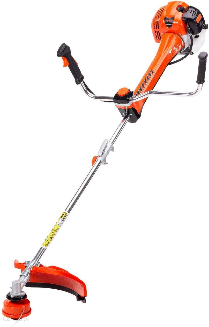Parametry techniczne:silnik dwusuwowypojemność skokowa silnika: 62 cm 3mieszanka paliwowa: 1:40 (100 ml oleju do silników dwusuwowych na każde 4 litry benzyny)pojemność zbiornika paliwa: 0,85 litramoc znamionowa maszyny: 2,6 kW przy 8500 obr./minmaksymalny moment obrotowy: 3,5 Nm przy 5500 obr./minmaksymalna prędkość obrotowa silnika: 9500 obr./minmaksymalna prędkość obrotowa silnika na biegu jałowym: 3000 ± 300 obr./minszerokość koszenia żyłką: 42 cmszerokość koszenia tarczą: 25,5 cmśrednica otworu narzędzi tnących: 26 mmgrubość tarczy tnącej: 1,4 mmilość zębów tarczy: 3przeniesienie napędu: przekładnia kątowadzielony wał ułatwiający transportuchwyt typu V oburęcznysystem antywibracyjnykierunek obrotów tarczy: lewy (patrząc od dołu)maksymalna średnica żyłki: 3 mmwaga: 9,5 kg