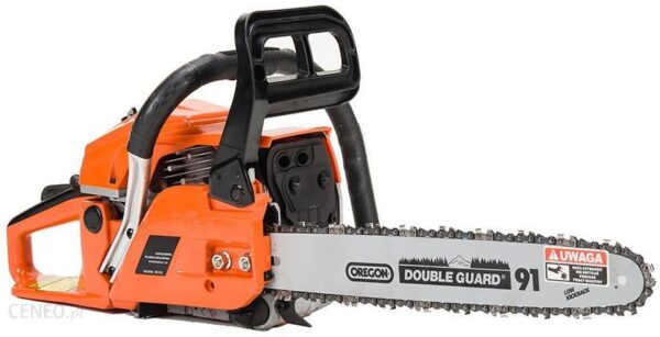Piła spalinowa NAC CST45-40AO OREGONPilarka spalinowa NAC CST45-40AO OREGON została wyposażona w silnik o mocy 2,45 KM*, który świetnie poradzi sobie do wszelkich prac w ogrodzie, w gospodarstwie, na działce, na budowie oraz przy pracach w lesie.Piła posiada stalowy grzebień oporowy, mechanizm natychmiastowego zatrzymania łańcucha oraz wbudowane amortyzatory minimalizujące drgania podczas pracy.Dzięki zwartej i mocnej obudowie oraz antywibracyjnej rączce praca pilarką jest bezpieczna i komfortowa.Wysokiej jakości prowadnica i wytrzymały łańcuch renomowanej firmy OREGON zapewniają doskonałą efektywność pracy.Parametry techniczne:silnik: jednocylindrowy, dwusuwowymoc: 2,45 KMpojemność skokowa silnika: 45 cm 3gaźnik: NACprowadnica OREGONdługość prowadnicy: 40 cmłańcuch OREGONzębatka: 6T x 3/8”podziałka łańcucha: 3/8”grubość łańcucha: 1,3 mmpojemność zbiornika paliwa: 550 mlpojemność zbiornika oleju: 260 mlmaksymalna prędkość obrotowa silnika z układem tnącym: 105000 obr/minmaksymalna prędkość silnika na biegu jałowym: 3000 obr/minautomatyczna pompa oleju z możliwością regulacjiantywibracyjna rączkaergonomiczny uchwyt z manetką gazumechanizm natychmiastowego zatrzymania łańcuchagwarantowana moc akustyczna 117 dB (A)waga 5,7 kgW zestawie znajdują się:PiłaOryginalna prowadnica wraz z osłonąMetalowe kłyPojemnik do wymieszania oleju z paliwemUniwersalny kluczWkrętak do regulowania gaźnikaInstrukcja obsługiZalecana mieszanka paliwowa:Przez pierwsze 10 godzin – 25 : 1 (2.5 litra benzyny na każde 100 ml oleju do silników dwusuwowych)Po przepracowaniu 10 godzin – 40 : 1 (4 litry benzyny na każde 100 ml oleju do silników dwusuwowych)