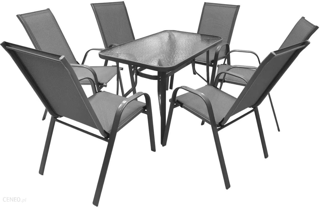 Zestaw mebli ogrodowy na taras stół i krzesła 6-osób Majorka szary6x Krzesło Majorka szary – 5901386270597Stół MAJORKA DUO 150x80x70 szary – 5901386274403Komfortowy, nowoczesny zestaw mebli ogrodowych składający się z stołu oraz wygodnych krzeseł.Doskonale sprawdzi się w ogrodzie, na działce lub na tarasie.Zestaw mebli został wykonany z należytą starannością przy użyciu wysokiej jakości materiałów. Solidna konstrukcja ze stali malowanej proszkowo. Wysoka trwałość, komfort użytkowania, a także elegancki, ponadczasowy design.Został stworzony z myślą o najbardziej wymagających klientach. Wysoki komfort użytkowania, najwyższa jakość użytych materiałów, a także niezwykle elegancki wygląd.Zastosowanie:- altanach- na tarasach- w ogrodzie- na balkonach- na kempinguSpecyfikacja MAJORKA DUO 150x80x70 szary:- Blat stołu wykonany z wytrzymałego szkła hartowanego na wzór falującej wody- Profile stalowe malowane proszkowo- Nadaje się do użytku na zewnątrz i wewnątrz- Łatwy montaż- Rozmiar blatu: 150×80 cm- Wysokość: 70 cmSpecyfikacja krzesła Majorka:- Szerokość: 55,5 cm- Głębokość: 65 cm- Wysokość: 93 cm- Waga: 4,6 kg- Przeznaczenie: do użytku wewnętrznego i zewnętrznego- Materiał: stelaż: stal; siedzisko: textilene- Obróbka: stal malowana proszkowo- Funkcje: brak możliwości regulacji- Pielęgnacja: nie wymaga konserwacji, łatwe w czyszczeniu- Instrukcja montażu: nie wymaga skręcenia- Maksymalne obciążenie: 120 kg